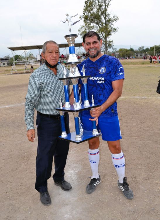 Enseguida vino el clásico protocolo entregando trofeo Javier Hernández al jugador Adrián Ensignia y luego la foto oficial.