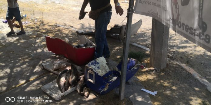 Tras el accidente la camioneta sale proyectada hacia dónde se encontraba el comerciante, destrozando varias hieleras donde tenía pescado para vender.