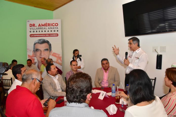 Nuevo Laredo, Tam.-Américo Villarreal Anaya, candidato de «Juntos Hacemos Historia» que conforman Morena-PT y Verde Ecologista convocó a ingenieros y constructores de esta frontera a sumarse al crecimiento y construcción de un nuevo Tamaulipas.