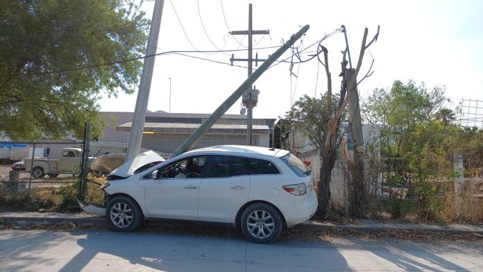 Además, la unidad terminó estrellándose con otro poste pero de concreto destrozando la parte frontal de la unidad.