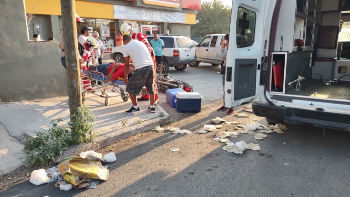 Presuntamente el conductor trataba de ingresar a los cajones del estacionamiento de un Oxxo, comentando que al tratar de hacerlo el sol lo encandiló lo que le impidió ver al motociclista quien venía en sentido opuesto.