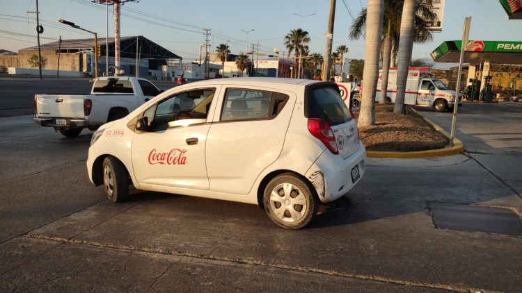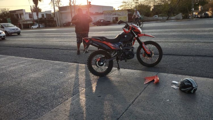 Cd. Victoria, Tam.- Un empleado de la Coca Cola que salía de una gasolinera para incorporarse a una transitada avenida terminó por derribar a un motociclista.