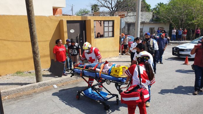 Paramédicos de Cruz Roja se encargaron de atender y posteriormente llevar a la mujer a un hospital ya que durante la caída sufrió sería de lesiones.