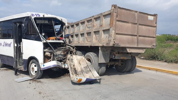 Cd. Victoria, Tam.- Alrededor de 25 personas lesionadas de los cuales al menos 12 eran menores de edad, dejó como saldo un choque frontal entre un microbús de pasajeros y un camión de volteo, todo por qué el chofer del transporte público iba en contra para tomar el retorno más próximo y ahorrarse la vuelta más larga.