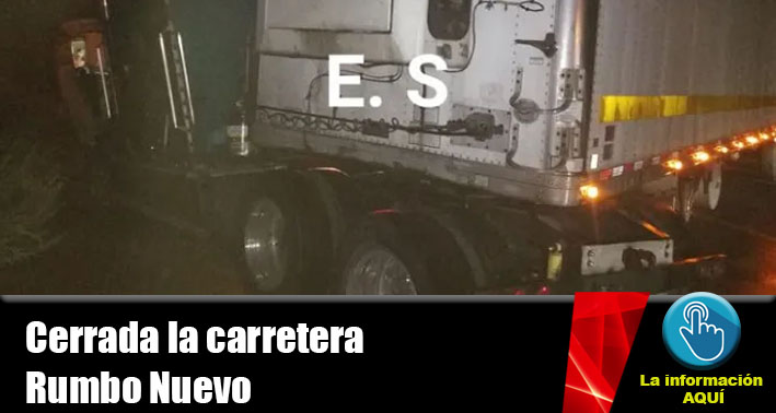 Presuntamente el exceso de velocidad provocó que al tomar la cerrada curva el segundo remolque se zafara con todo y Dolly saliendo de la superficie de rodamiento hasta quedar volcado.