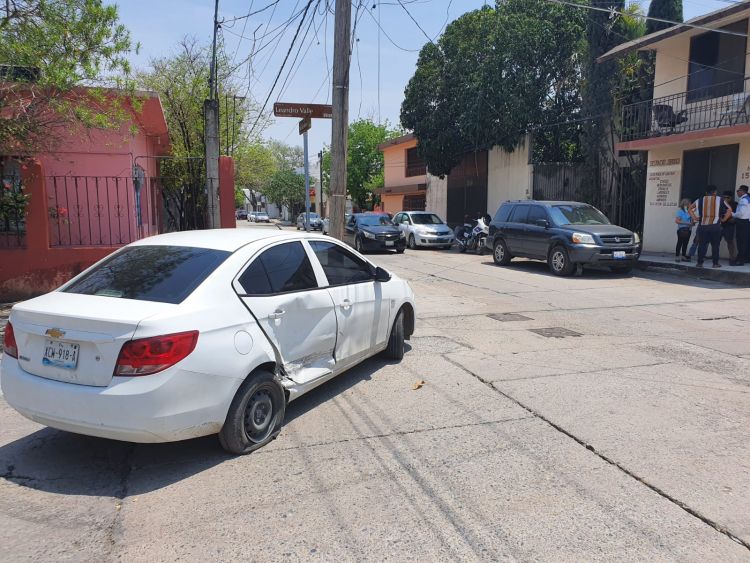 La falta de precaución provocó que al llegar al cruce con la de Bravo omitiera la señal de alto siendo impactado por una camioneta Honda que se desplazaba con preferencia de paso.