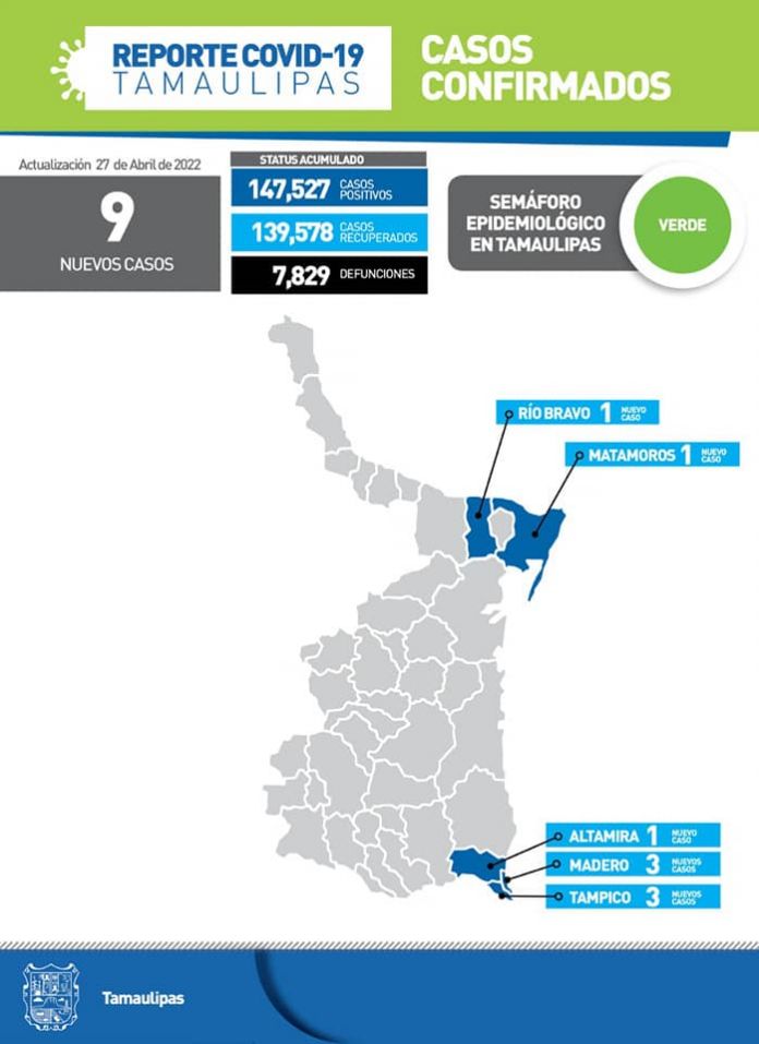 Tamaulipas concluyó la jornada de este miércoles con 9 positivos a COVID-19 y aunque no