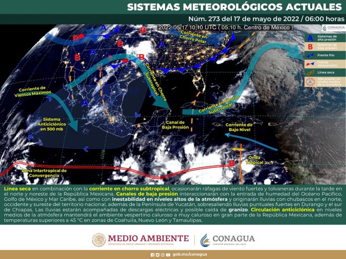 Al divulgar en redes sociales el aviso climatológico, el Servicio Meteorológico Nacional detalló que las elevadas temperaturas son originadas por una circulación anticiclónica en niveles medios de la atmósfera, lo que mantendrá el ambiente vespertino caluroso a muy caluroso en gran parte de la República Mexicana.