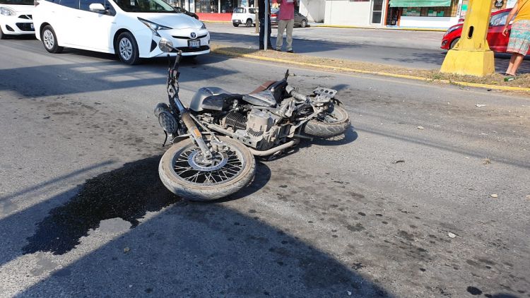 Fue en el cruce con Sierra de Casas cuando un motociclista que venía de poniente oriente salió a su paso y colisionaron sacando la peor parte motociclista.
