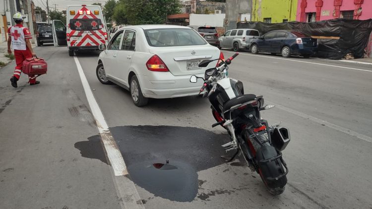 Cd. Victoria, Tam.- Por andar a las carreras, un motociclista y la persona que lo acompañaba terminaron chocando la parte posterior de un vehículo que se encontraba haciendo alto.