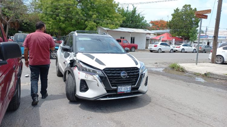 Supuestamente a llegar al cruce con la de Mina, omitió el señalamiento de alto y terminó impactándose contra una camioneta Dodge propiedad de un comerciante.