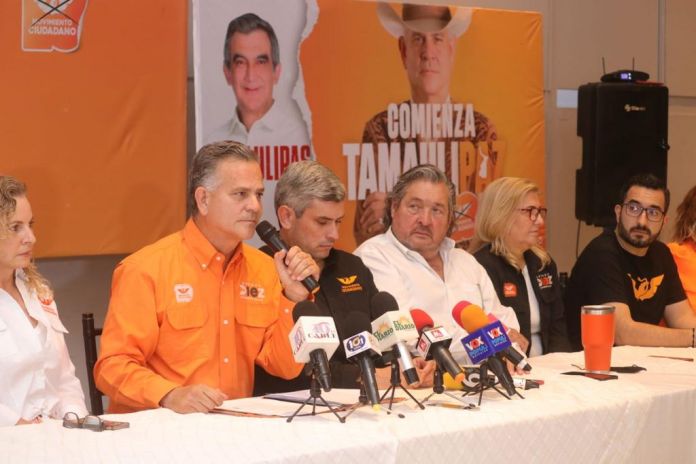 «Nuestra única alianza será con las y los tamaulpecos que queremos reconstruir la paz y sí se puede», declaró en rueda de prensa en la que estuvo acompañado por el coordinador de movimiento ciudadano en el estado Juan Carlos Zertuche, de Gustavo Cárdenas Diputado local, Elizabeth Humprhey, coordinadora general de la Campaña, así como representantes de la estructura del partido.