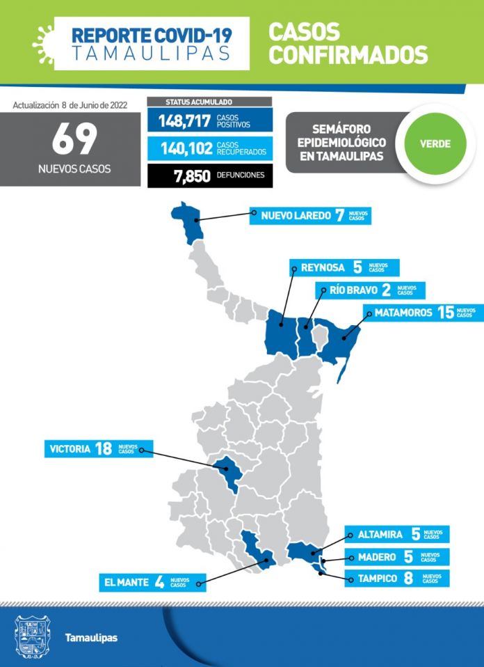 Ciudad Victoria, Tamaulipas.- Aunque Tamaulipas continúa en semáforo epidemiológico color verde, la emergencia sanitaria por COVID-19 no ha terminado y el riesgo de contagio o de complicaciones graves por el virus, sigue existiendo, aseguró hoy la secretaria de Salud, Gloria Molina Gamboa.