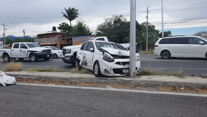 Según confirmaron autoridades los presuntos ladrones viajaban a bordo de un automóvil Nisan March color blanco el cual quedó completamente destrozado de la parte frontal.