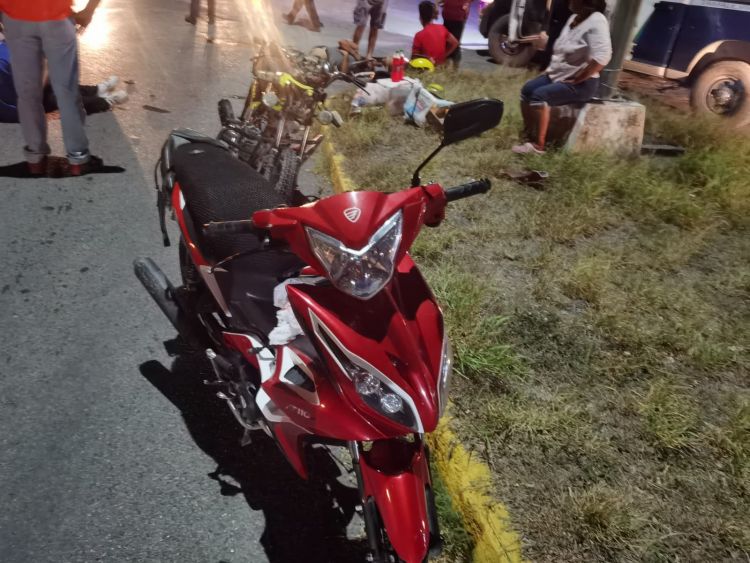 Sin embargo, la falta de precaución provocó que chocara contra otra motocicleta en color negro en la cual viajaba un hombre y una mujer.