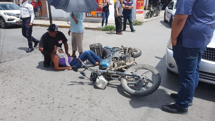 Los técnicos en urgencias médicas revelaron que el conductor de la moto sufrió golpes que no fueron de consideración, mientras que la mujer sea con la peor parte.