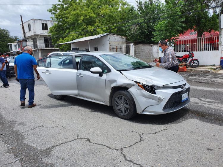 Al parecer la falta de precaución, provocó que golpeara a un automóvil Toyota Corolla que en ese momento circulaba por la calle Aldama en sentido de oriente a poniente.