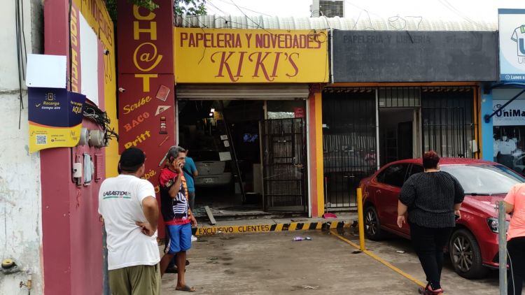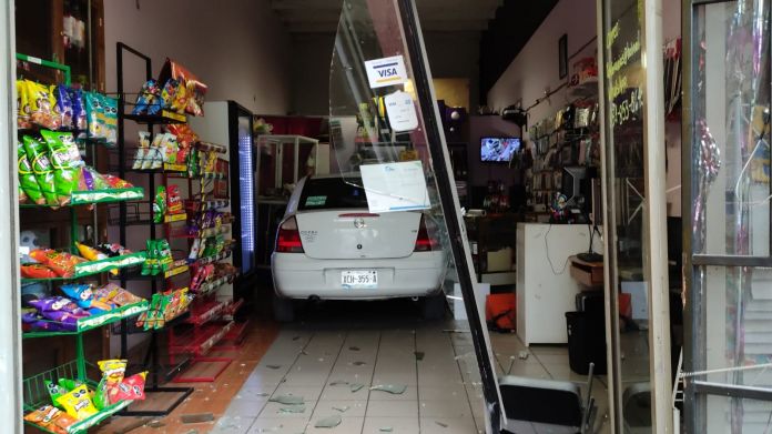 Presuntamente la joven trataba de estacionarse frente al negocio y al parecer confundió el freno con el acelerador lo que provocó que brincara la banqueta y traspasara las puertas de aluminio y vidrio hasta quedar al interior del negocio.