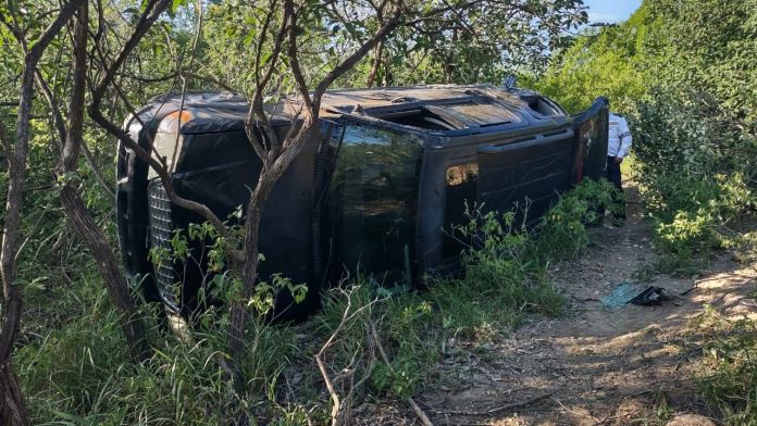 Presuntamente a la altura del fraccionamiento un vehículo de carga le cerró el paso lo que provocó que la mujer perdiera el control y abandonara la superficie de rodamiento hasta volcar y quedar en un pequeño barranco.