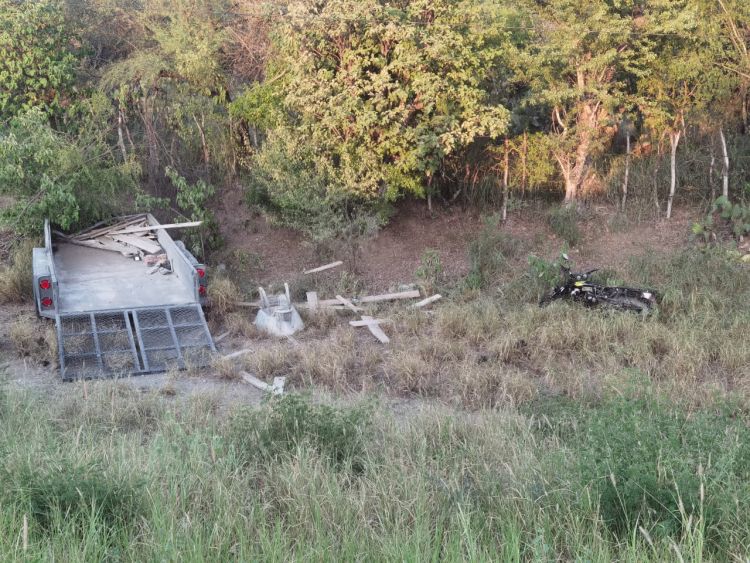 Un matrimonio y su bebé que viajaban a bordo de una motocicleta sufrieron un terrible accidente luego de chocar de frente contra una traila la cual se zafó de una camioneta.