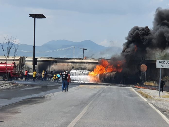 Luego de sofocar el incendio qué provocó la explosión de una pipa tras chocar con el tren las autoridades confirmaron que entre los escombros se encontró el cuerpo calcinado de una persona la cual no ha sido identificada.