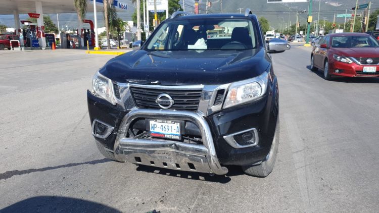 Transito comentó que como presunto responsable aparece una camioneta Nissan Frontier, la cual se desplazaba de poniente a oriente por el Bulevar Emilio Portes Gil.