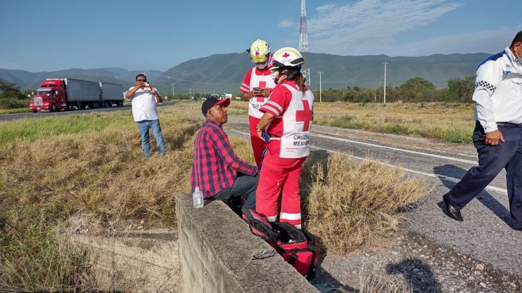 El accidente tuvo lugar en el libramiento Naciones Unidas y entronque con carretera Rumbo Nuevo, hasta donde acudieron paramédicos de Cruz Roja para atender al lesionado.