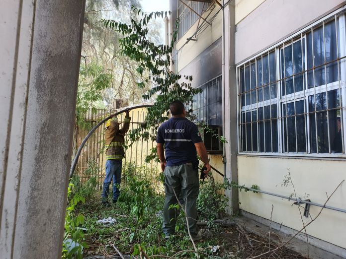 Personal de bomberos que atendió el llamado de auxilio, señaló que los hechos ocurrieron al interior de un aula cuando uno de los aires acondicionados Sufrió un corto en el sistema eléctrico.