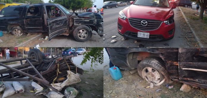 El accidente ocurrido a la altura de la escuela Secundaria del poblado Loma Alta, originó la movilización de los cuerpos de emergencia de Loma Alta y Mante, atendiendo en lugar a los conductores implicados.