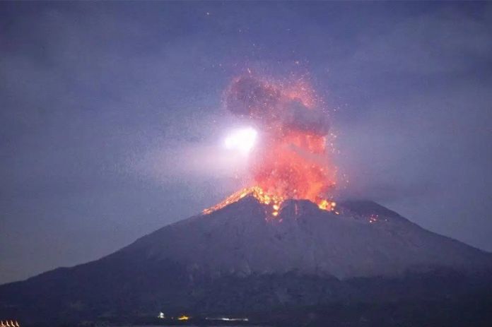 El volcán, situado en la prefectura de Kagoshima, entró en erupción a las 08:05 h local y las piedras desprendidas cayeron hasta 2.5 kilómetros de distancia del mismo, aunque no se produjeron informes inmediatos de heridos tras la erupción.