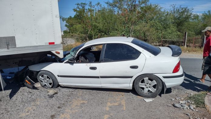 El conductor de un automóvil que no conservó su distancia, terminó por estamparse en la parte trasera de un camión que se disponía a dar la vuelta para entrar a una colonia.