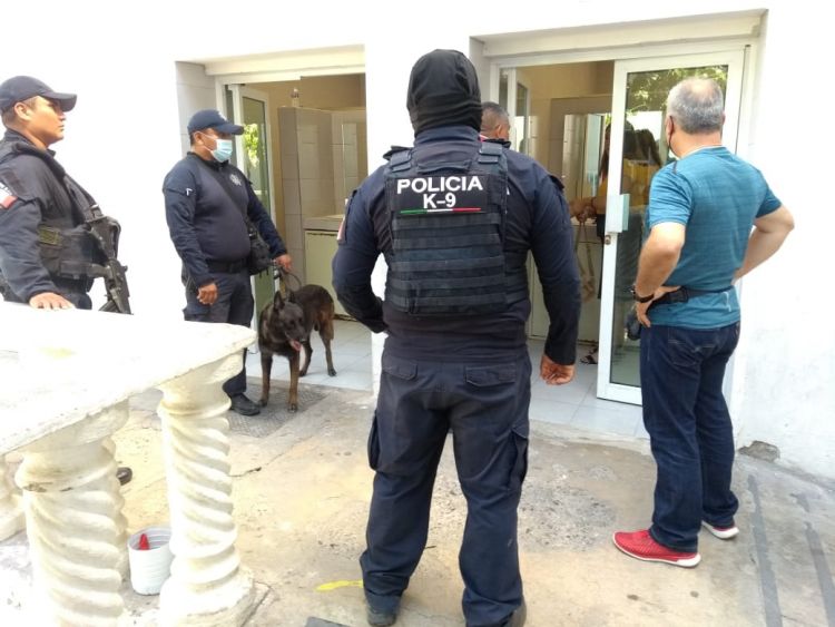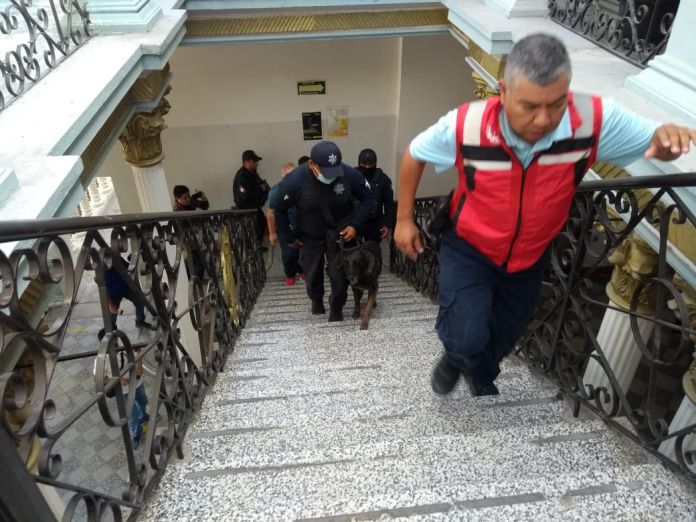 Acompañados también por personal de Protección Civil del Municipio de Victoria los elementos policiacos y el binomio canino realizaron un recorrido por todas las áreas del edificio de la Presidencia Municipal sin encontrar ningún objeto sospechoso.