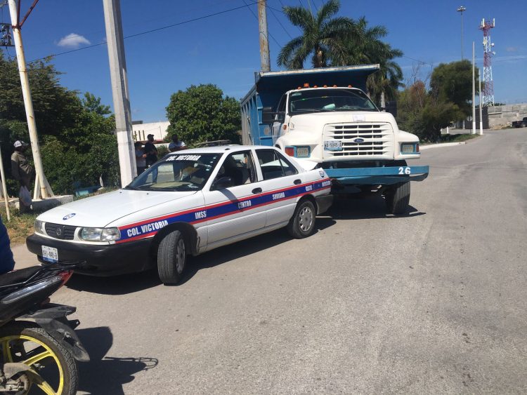 Mante, Tam.- Serios daños en la parte posterior sufrió un automóvil de transporte público luego de ser impactado por un camión de volteo en la avenida la Concordia con Enrique Cárdenas González.