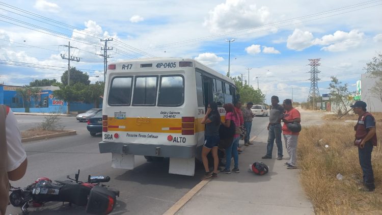 Un empleado resultó con golpes en el cuerpo, luego de estrellar la motocicleta que manejaba en la parte trasera de un microbús.