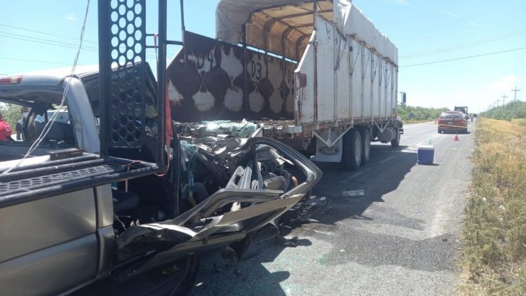 La Secretaría de Seguridad Pública, informó que en este choque participa un camión de plataforma y una camioneta Chevrolet, la cual terminó aparentemente estrellándose en la parte trasera.
