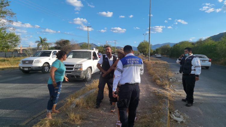 Los hechos se suscitaron en el libramiento Emilio Portes Gil con calle Berriozábal, cuando un elemento de tránsito local le hizo la parada una camioneta Ford Ranger.