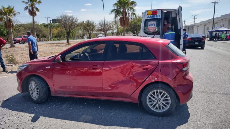 Cd. Victoria, Tam.- Tremendo susto se llevó la conductora de un automóvil, tras ser impactada por un camión de volteo.