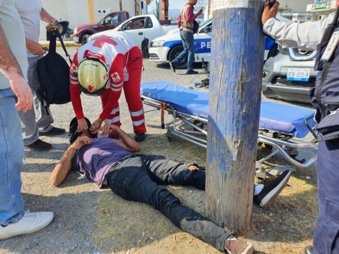 Paramédicos de Cruz Roja se trasladaron a ese lugar para atender al lesionado quien tuvo que ser trasladado a un hospital.