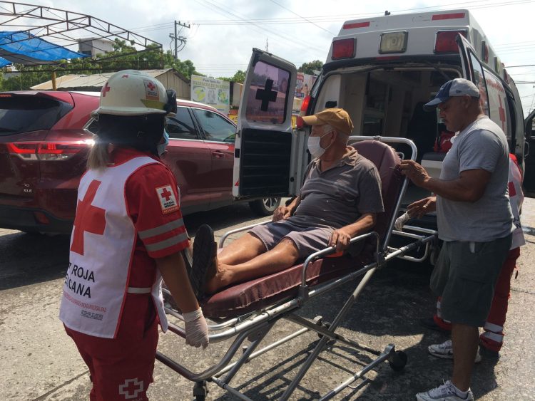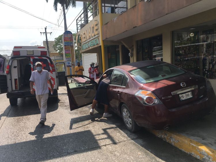 Al lugar acudieron paramédicos de Cruz Roja para atender a la persona, quien comentaba que mientras manejaba su automóvil Nissan Altima se sintió mal.