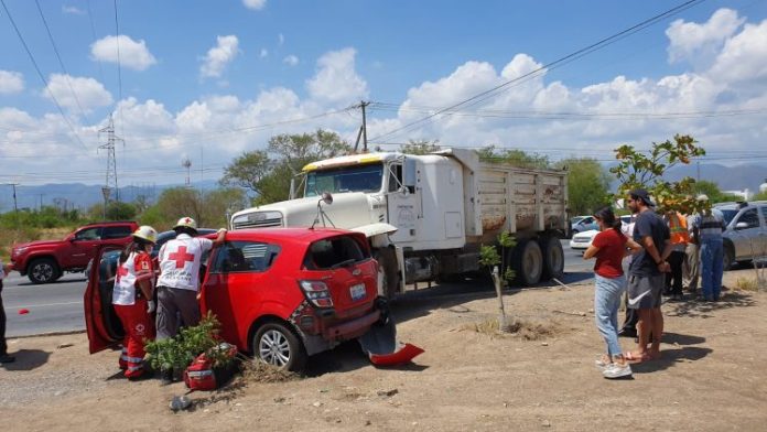 Una mujer que se encontraba haciendo alto resultó lesionado luego de ser impactado por un camión de volteo cuyo conductor dijo que le fallaron los frenos.