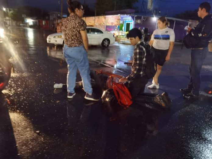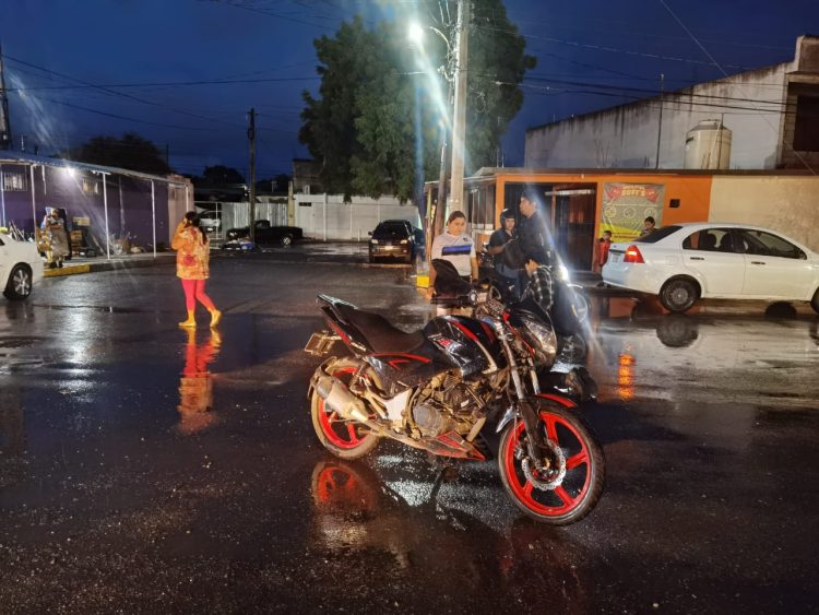 Empapados y con golpes en el cuerpo resultó una pareja cuando la motocicleta en la que viajaban la estrellaron contra un vehículo en el 14 Ceros Mina.
