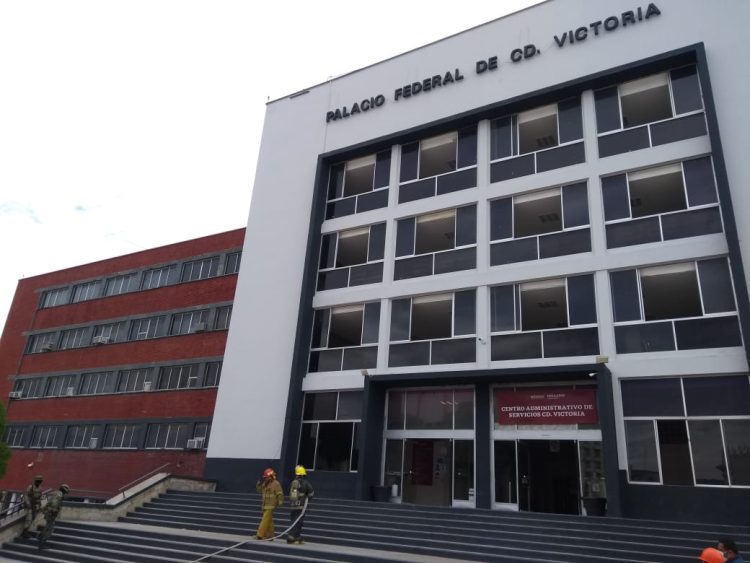 CIUDAD VICTORIA.- En el marco del Día Nacional de Protección Civil esta mañana se llevó a cabo un simulacro por incendio en el edificio de Palacio Federal.