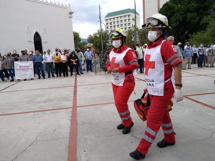 Cabe señalar que en el simulacro participó personal de la Secretaría de la Defensa Nacional, Guardia Nacional, Protección Civil de Gobierno del Estado, Cruz Roja Mexicana y Tránsito Municipal, así como las brigadas internas de protección civil de cada una de las dependencias.
