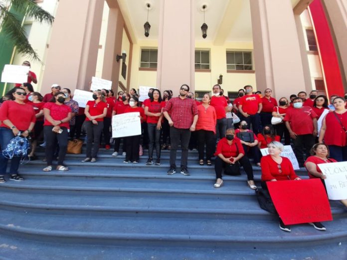 Con diversas consignas, el grupo de alrededor de 50 docentes, algunos federalizados y otros que dependen del Estado exigen el pago del retroactivo y otros adeudos que de acuerdo a sus reclamos se les adeudan.
