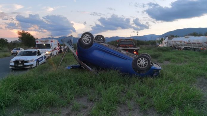 Un empleado de la Universidad Autónoma de Tamaulipas resultó lesionado tras volcar su automóvil en el libramiento Naciones Unidas, a la altura de las vías del ferrocarril, dónde se ubica Pemex.