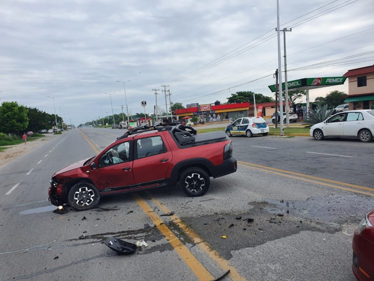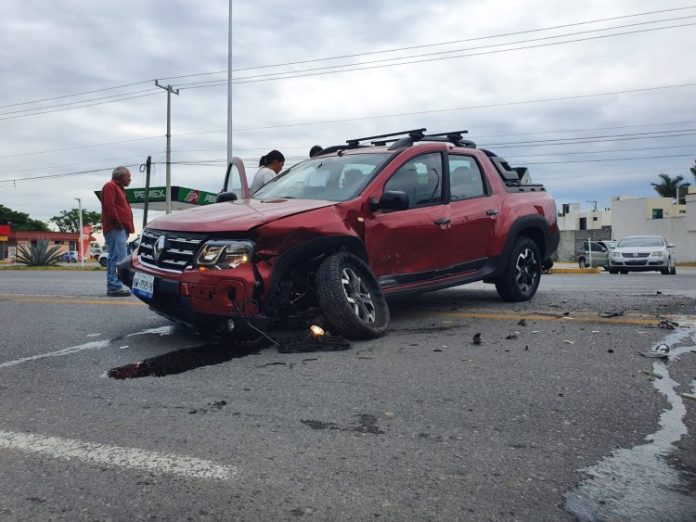 Fue cuando iba llegando a la gasolinera cuando presuntamente una camioneta Renault Oroch los golpeó provocando que ambas unidades quedaran seriamente dañadas.