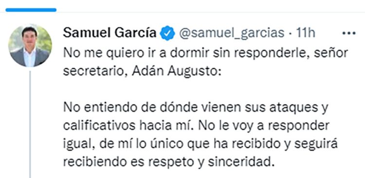 En específico, se refirió al gobernador de Nuevo León, Samuel García, al que acusó de tomar una actitud hipócrita y egoísta.