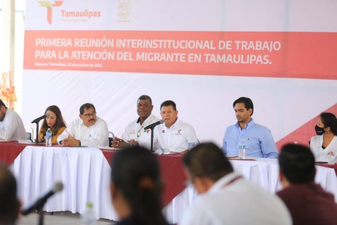 El subsecretario general de Gobierno, Tomás Gloria Requena expresó que la indicación del gobernador Américo Villarreal, es trabajar en coordinación con todas las dependencias federales, estatales y municipales para desplegar estrategias y acciones gubernamentales que ayuden a aliviar el fenómeno migratorio que se ha acentuado en ciudades fronterizas de Tamaulipas.
