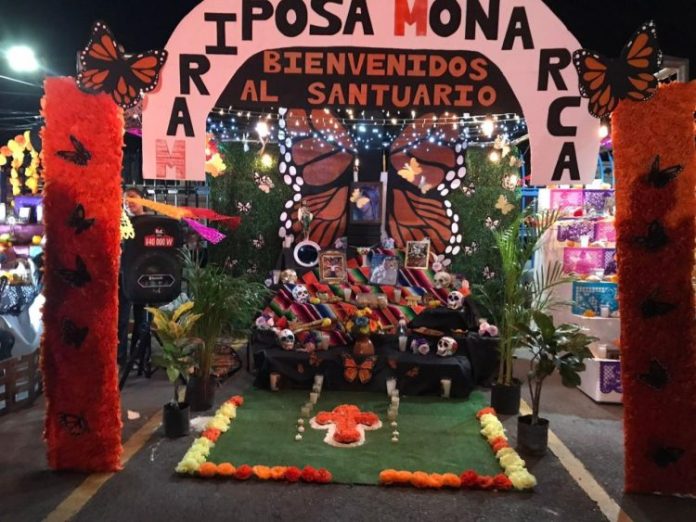 Reynosa, Tamps.- Previo al Día de Muertos, alumnos de la Universidad Autónoma de Tamaulipas (UAT) campus Aztlán, hicieron un altar de muertos dedicado al activista Homero Gómez, defensor de la mariposa monarca.