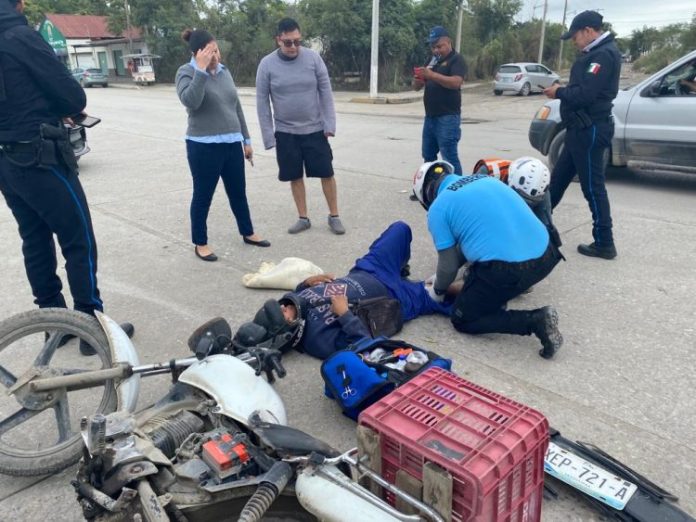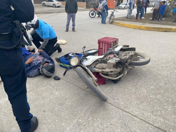 Mante, Tam.- Un motociclista fue trasladado al hospital luego de impactarse contra un vehículo que trataba de incorporarse al bulevar Enrique Cárdenas en ciudad Mante.